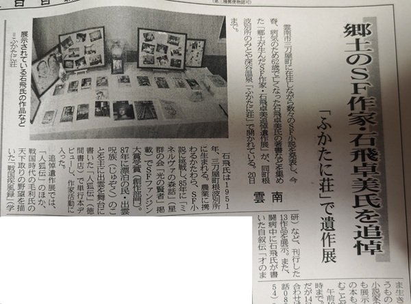 石飛先生の奥様が1980年頃から、SF界の巨匠ロバート・A・ハインライン氏と文通されていて、1982年10月にはご夫妻で来日されたハインライン氏が、翻訳家の矢野徹氏と柴山裕見子さんともう一人のファンの女性(裕見子さんの友人)に会われた話はSFマガジンでも紹介されました。